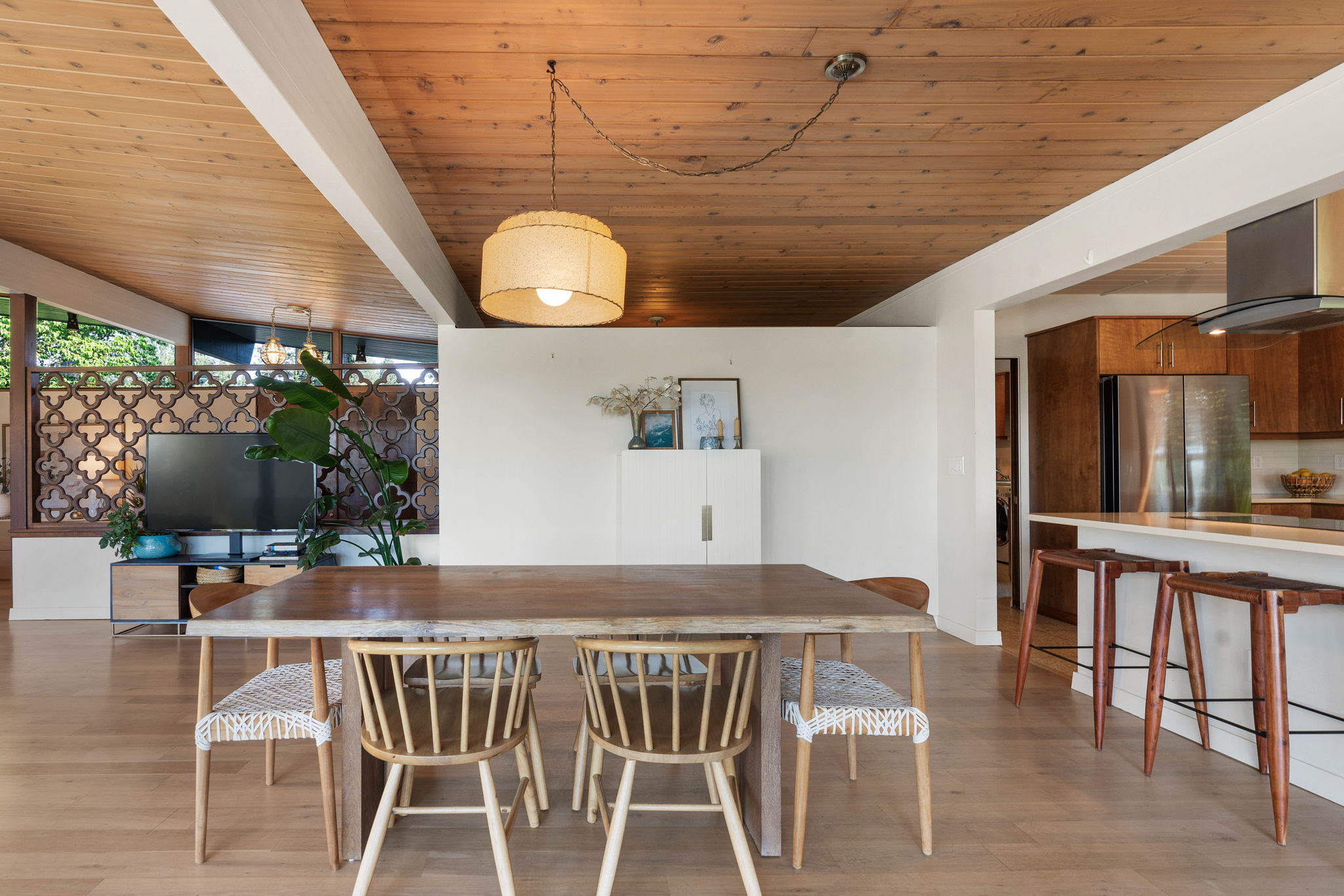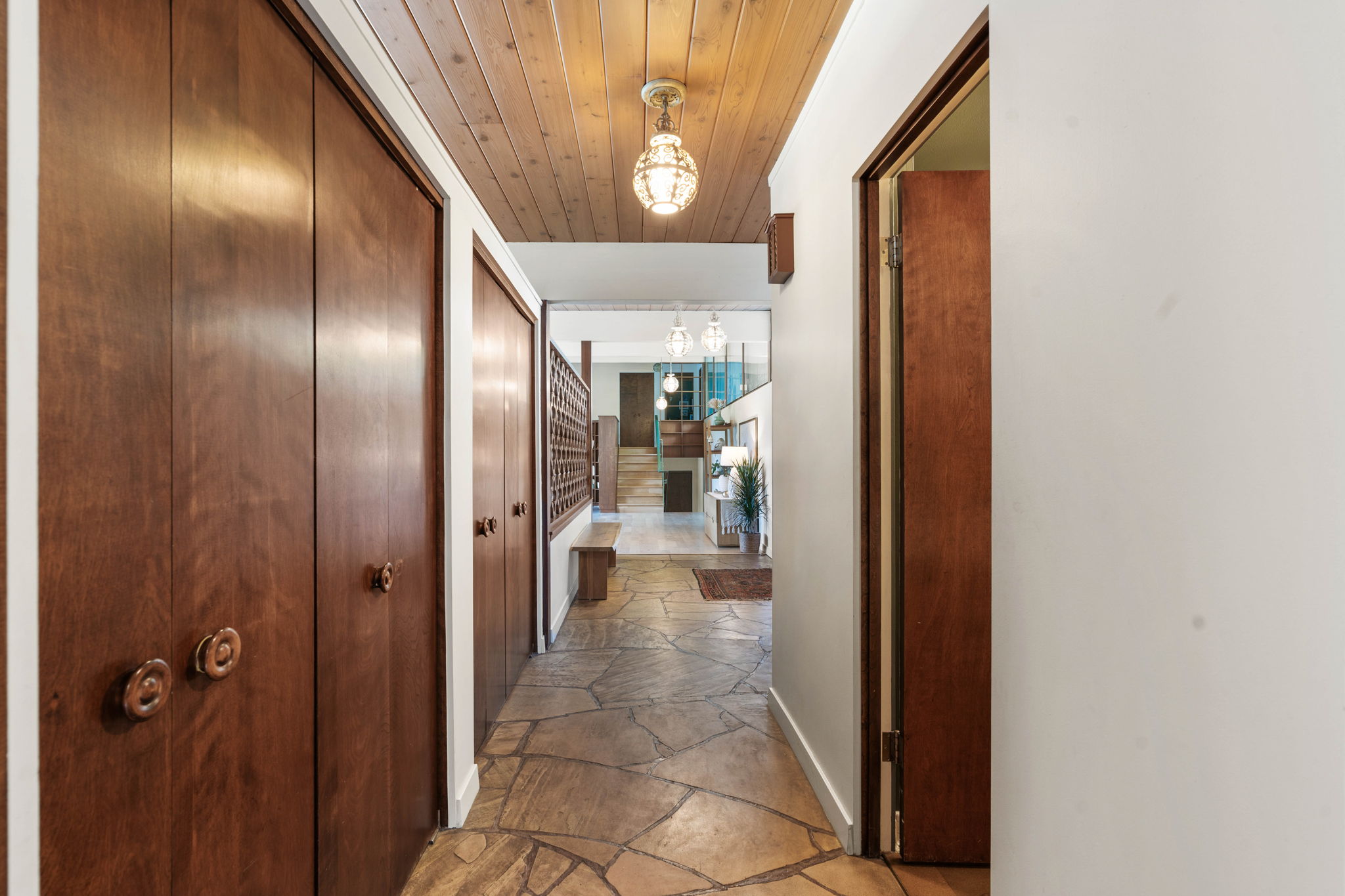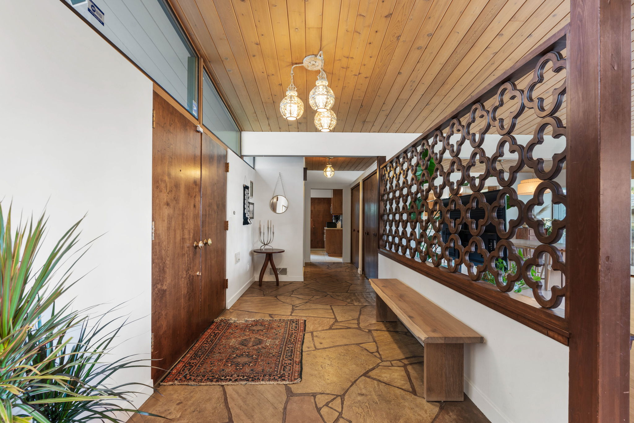 Welcome to a distinguished piece of architectural history. Nestled in a private, exclusive neighborhood with views of the Kalispel Country Club, this 1960 Mid-Century Modern ‘Atomic Rancher’ exemplifies both timeless design and original details. The residence is an entertainer’s dream and features 3 bedrooms and 3.5 bathrooms, with standout elements such as tongue-and-groove ceilings, exposed beams, and a striking two-sided stone fireplace. The pristine terrazzo floors and built-in walnut bookshelves are just two of the original elements that make this home such a unique gem.
