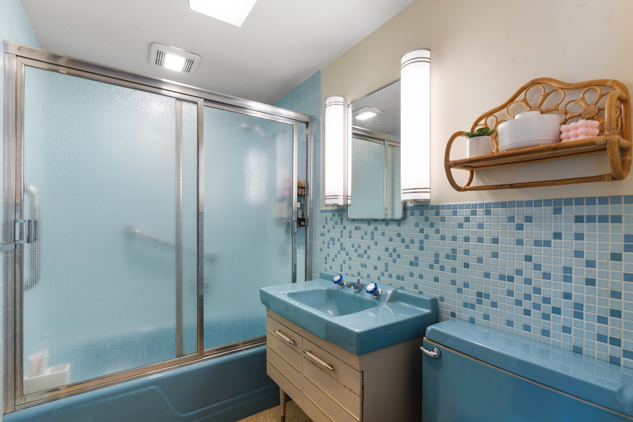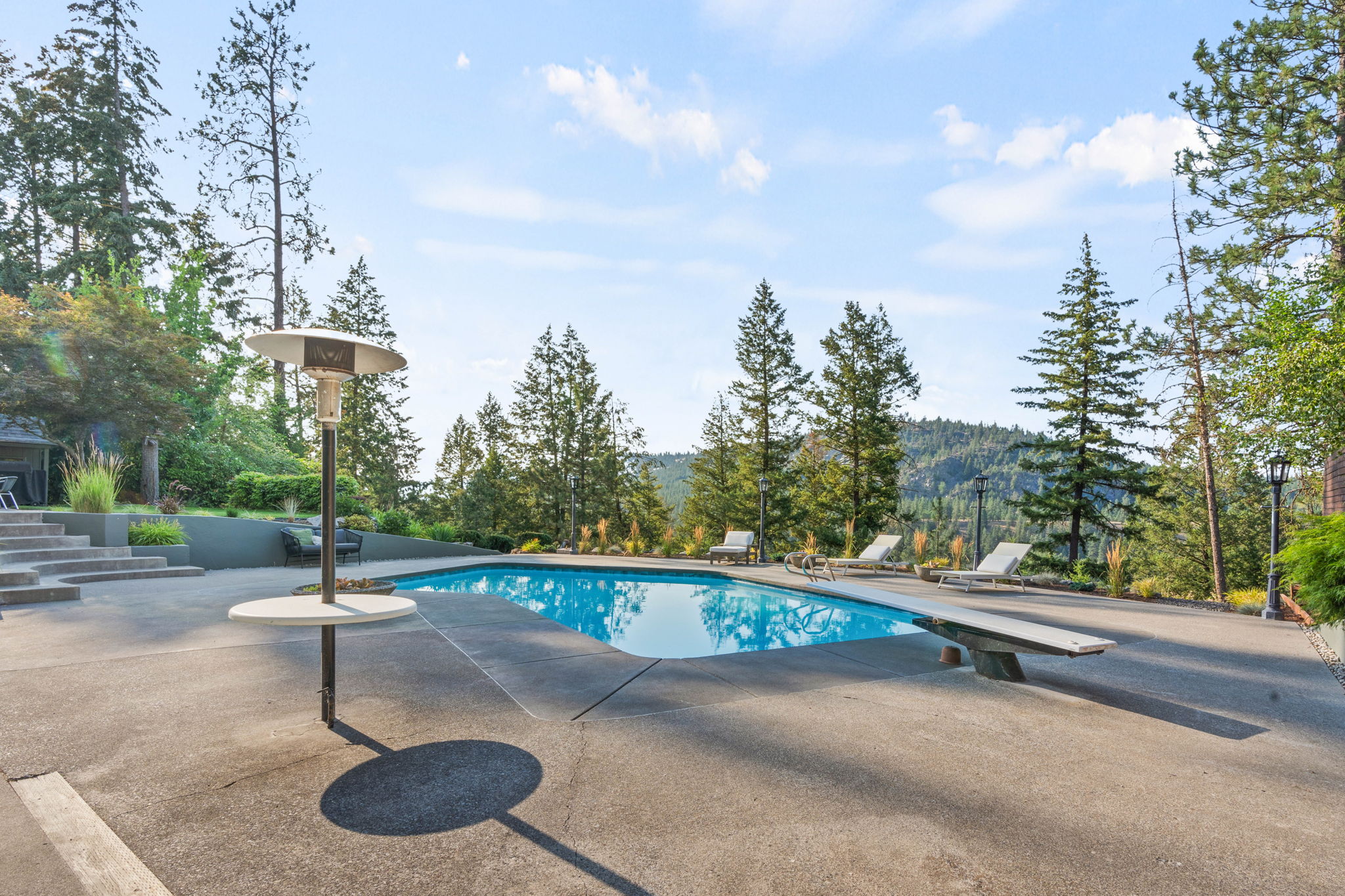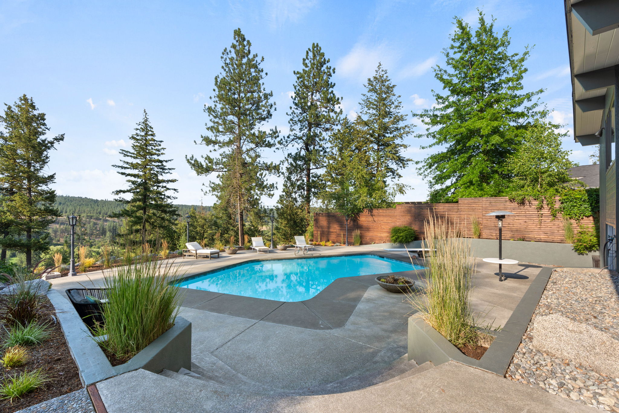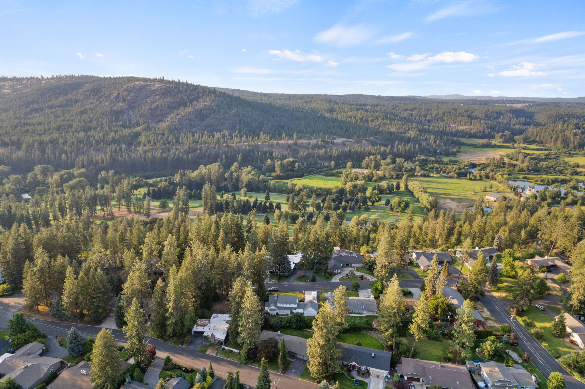 A covered patio offers a serene setting with views of the saltwater pool and the expansive Kalispel Country Club Golf Course. With generously sized bedrooms and a spacious basement bonus room, this home provides ample space for both family and guests. Located in a secluded area with sweeping views of the fairways below, you’ll experience privacy and tranquility while remaining close to Spokane’s vibrant amenities. Ride your own golf cart along the private back entrance of the country club for your dinner reservation or tee time. Additional features include a modern kitchen with updated appliances, a 60-foot wall of floor-to-ceiling windows that flood the interior with natural light, and mature landscaping that transforms the backyard into a private resort. This mid-century gem offers a rare opportunity to own a piece of Atomic Rancher history in one of Spokane’s most sought-after neighborhoods.