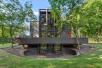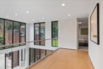 The home showcases clean horizontal lines, dramatic floor to ceiling windows, and an intentional interplay of form and structure. A 2007 addition seamlessly integrates a thoughtfully designed kitchen featuring terrazzo floors, quartz countertops, custom-made cabinets and top-of-the-line appliances. The main floor primary bedroom has a spa-inspired ensuite and an elevated loft space, complete with its own outdoor access to a private upper-level terrace. Three additional bedrooms, a second story work/study area, and a lower level rec room enhance the home’s versatility.