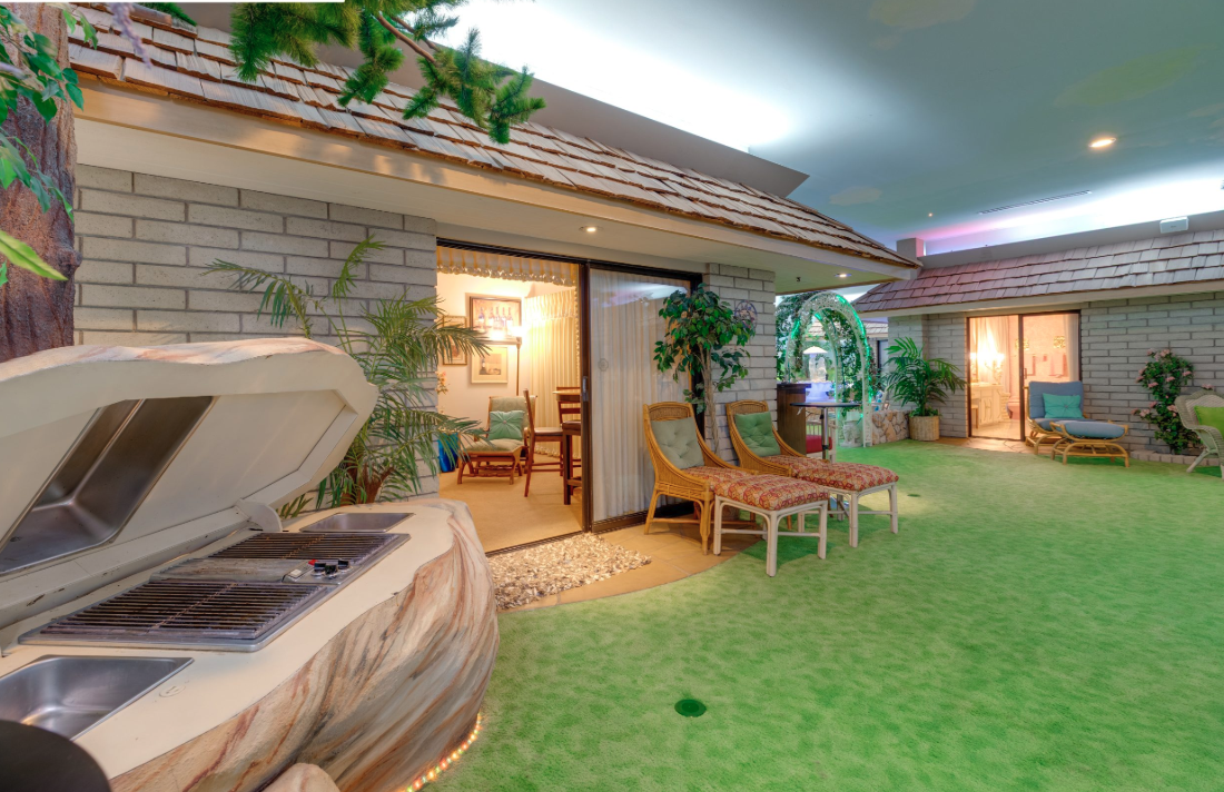 One of America’s most extraordinary residences: The Underground House. Concealed 26 feet below ground, this 14,620 sq. ft. subterranean estate was built in the 1970s by businessman Jerry Henderson and architect Jay Swayze as the world’s largest “Atomitat” — a Cold War–era luxury bunker designed for self-sufficient living. Featuring a total 5 bedrooms, 6 baths over 2 homes (one above ground and one below ground), an indoor pool, putting green, theater, dance floor, bar, saunas, and a programmable faux sky, it recreates the feeling of being above ground while offering total privacy and security. Hand-painted landscape murals, sculpted trees, and retro 1970s design details create an immersive, time-capsule setting unlike any other. This is a rare investment opportunity — ideal as a private residence, event venue, museum, luxury rental, or cultural landmark. A true piece of Las Vegas history and a chance to own a property that is equal parts residence, attraction, and legend.